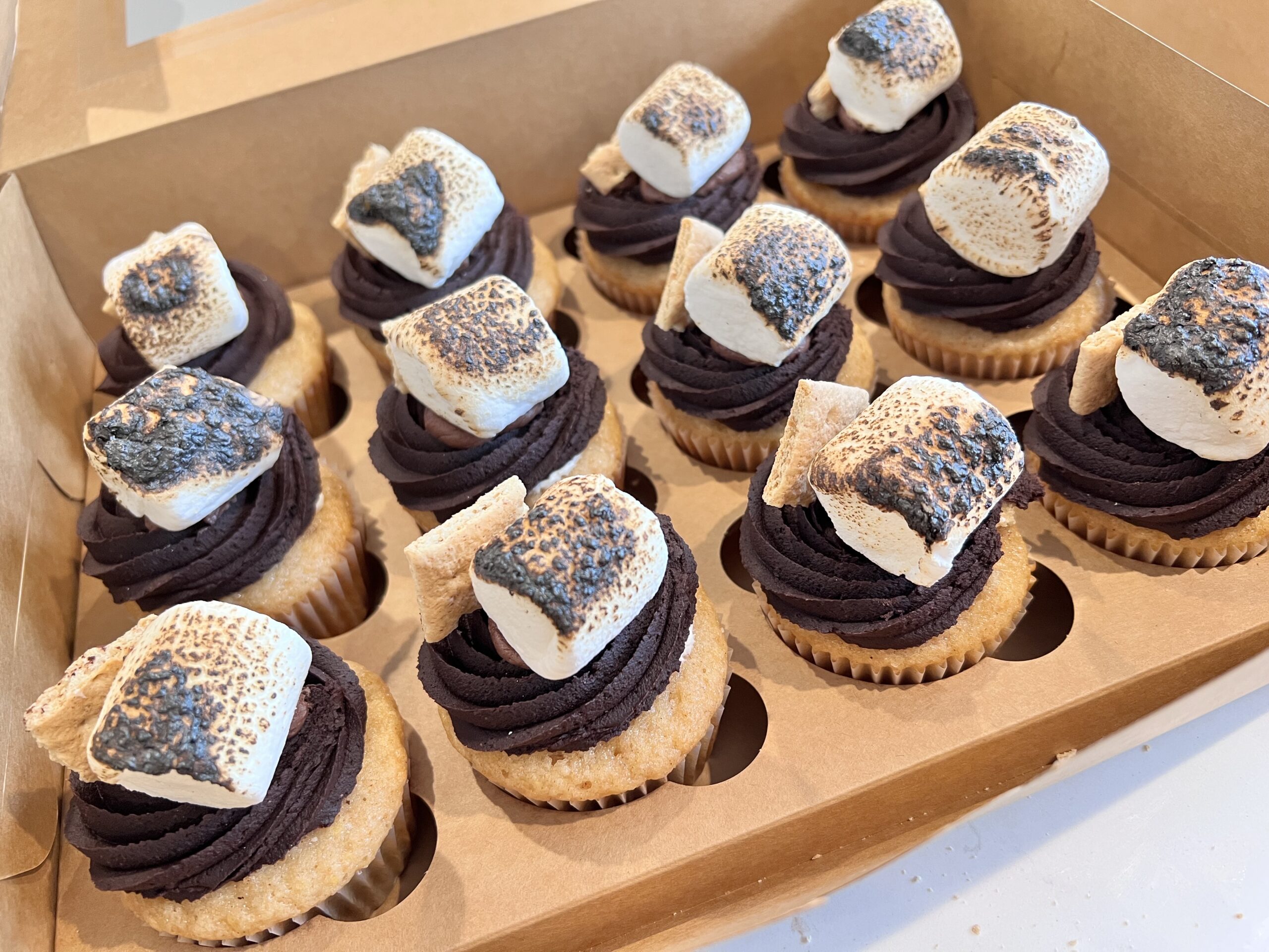 graham cracker cupcake, marshmallow filling, fudge frosting, toasted marsh,allow, graham cracker