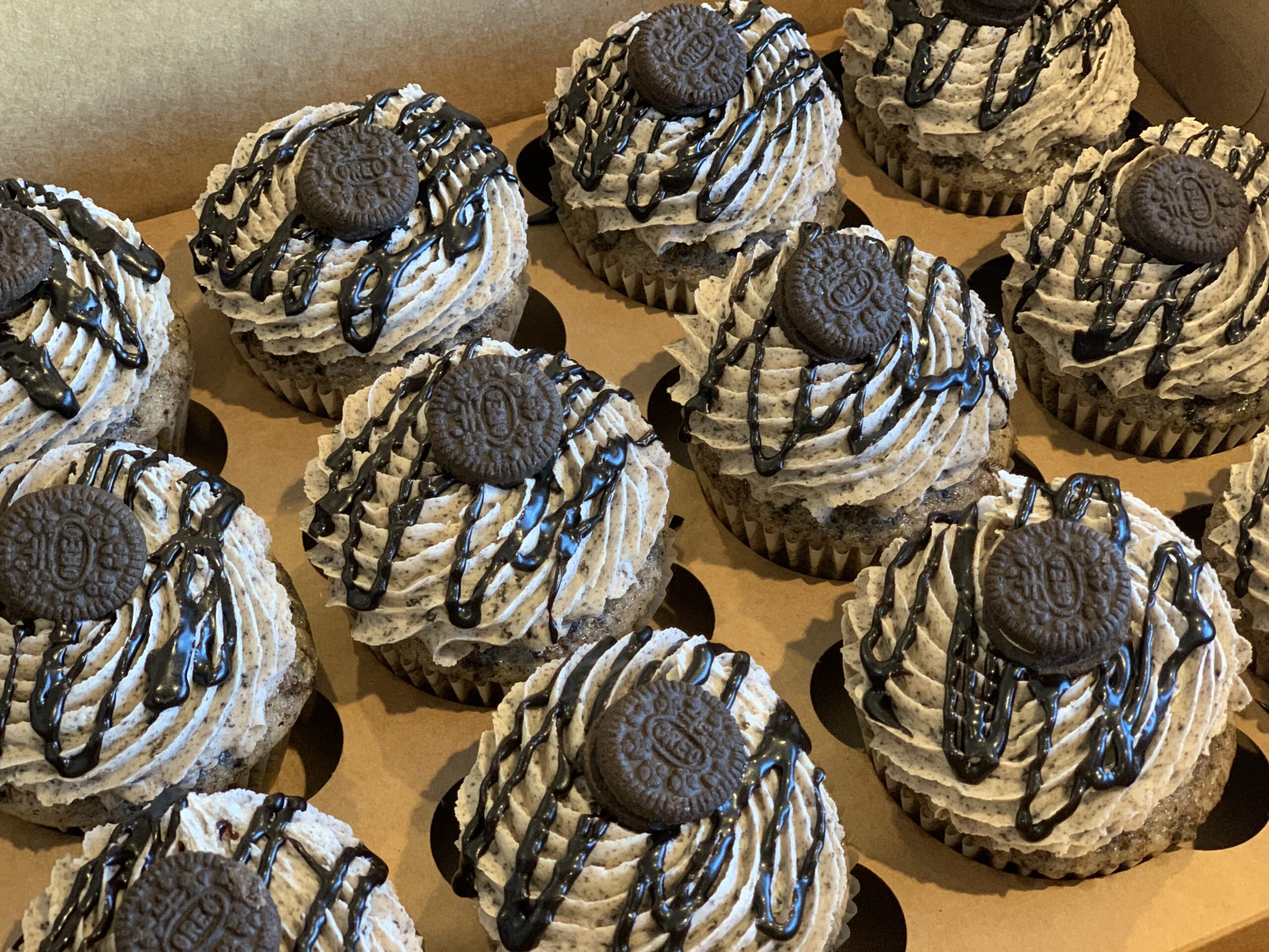 Cookies n cream cupcake, cookies n cream buttercream frosting, fudge drizzle, cookie garnish