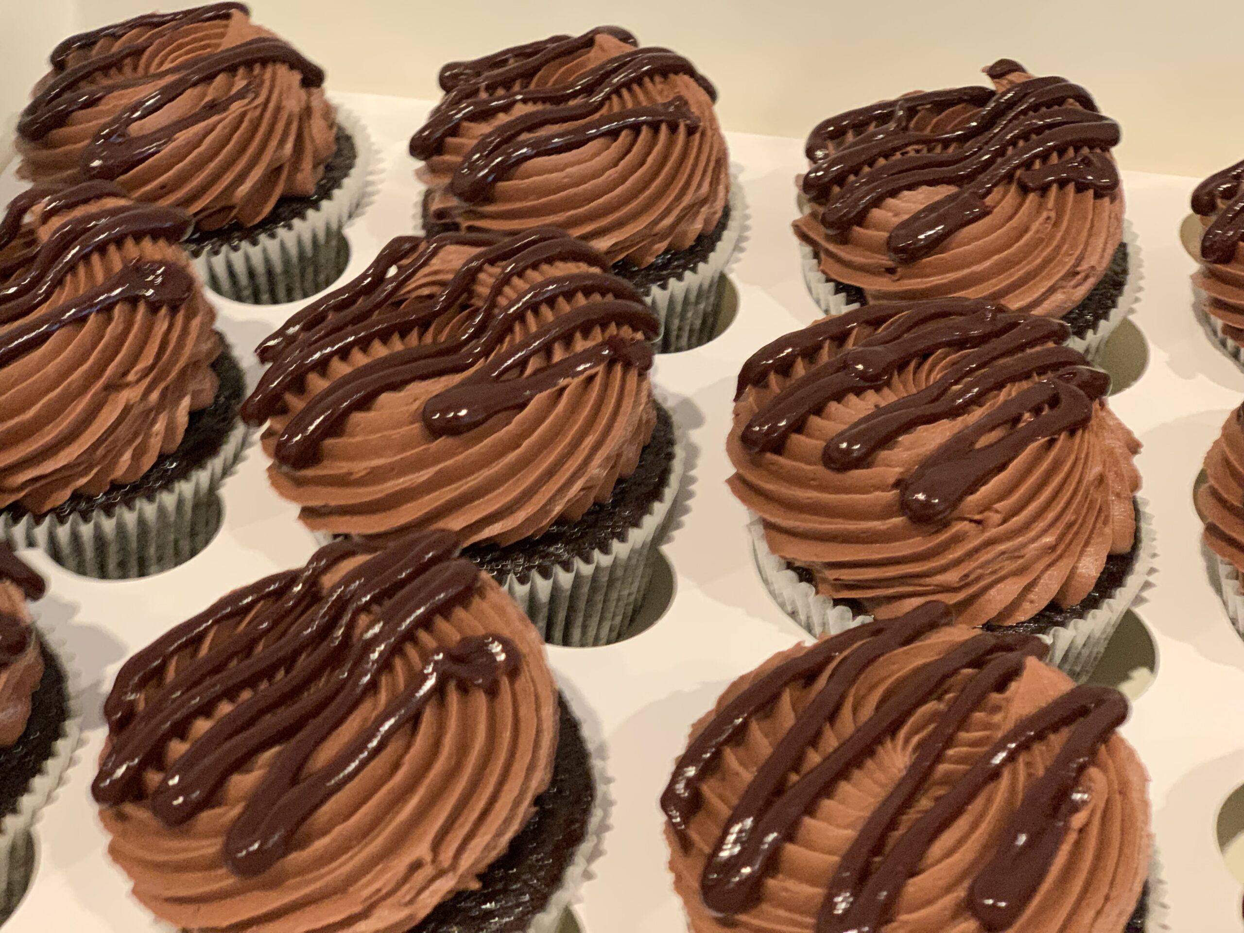 chocolate cupcake, chocolate buttercream, fudge drizzle